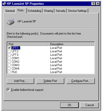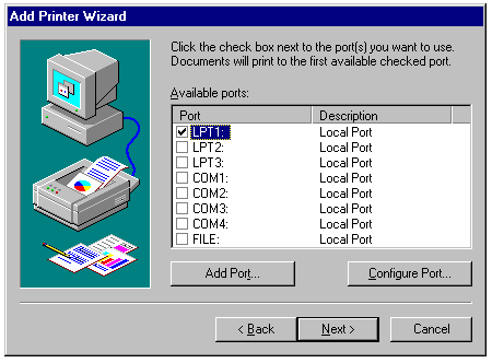 a printer connected to an LPT or COM port of the server, as well as how