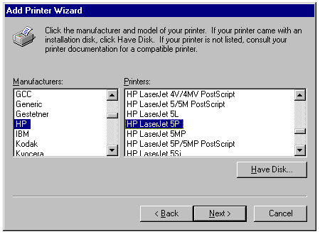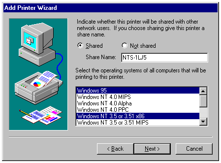 printers shared by Windows NT servers.