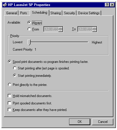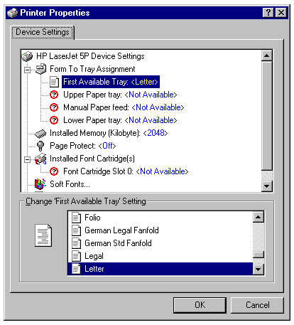- In the Printername Properties sheet, display the Device Settings