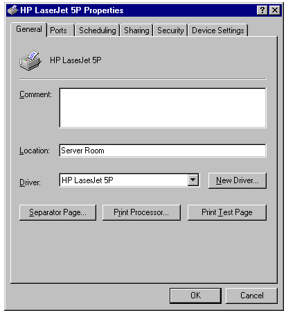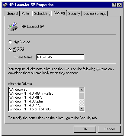 change properties of a printer previously set up as a shared Windows NT