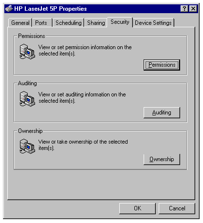 to the Security page of the Printername Properties sheet.