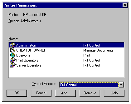 manage the printer, and modify its properties. Full control should normally