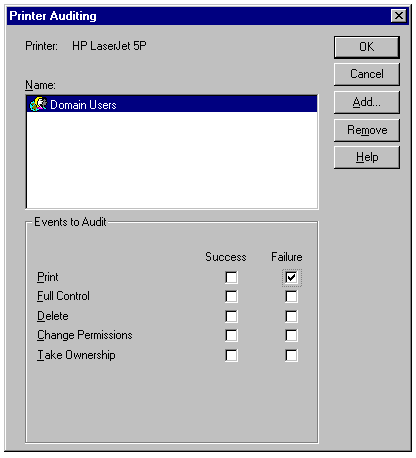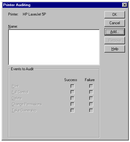 the Auditing button to display the Printer Auditing dialog (see fig. 13.53).