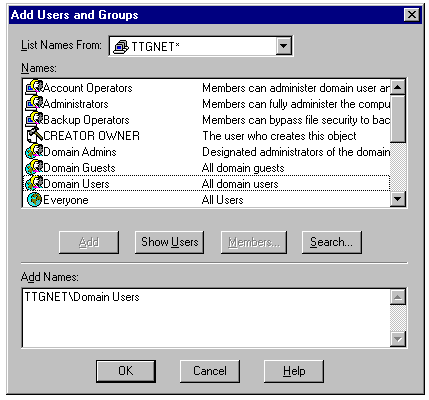 Add Names list by either double-clicking the user or group name, or by