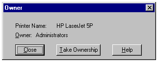 Taking ownership of the printer in the Owner dialog.