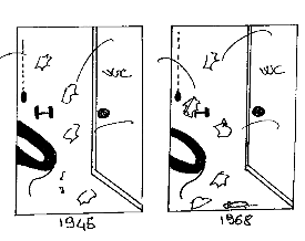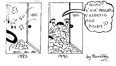 Perché dopo una lunga protesta fatta a suon di manifesti, di petizioni e di arrabbiature, i bagni sono ancora in condizioni tali da non superare una visita dell'ufficio di igene? C'è poca carta, il sapone si trova alla "borsa nera" per opera di pochi volenterosi, ... ...è necessario fare prima la vaccinazione antitifica ed anticolerica e munirsi di un mezzo anfibio. E' anche peggio dei bagni della Casa Dello Studente. Più di così...