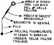 Fate ondeggiare la pallina avanti e indietro, con leggeri movimenti del braccio, tenendo la bacchetta in mano (c'è apposta il manico) in posizione parallela rispetto all'asse longitudinale del corpo. Poi, al momento giusto, dare un colpo secco con il polso cercando di far andare la pallina nel buco dell'anello d'acciaio.