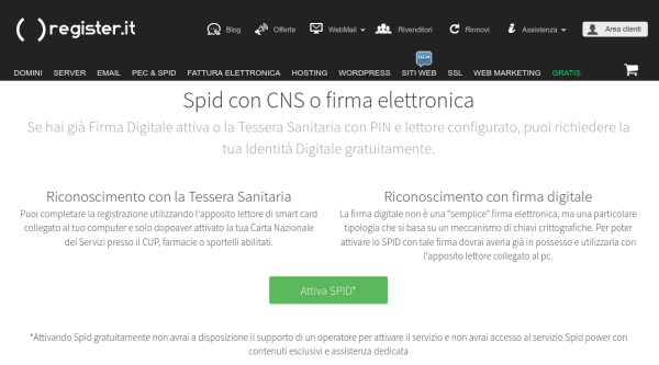 - L'offerta dello SPID gratuito è accostata all'offerta di servizi accessori a pagamento, in modo un po' confuso.