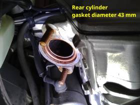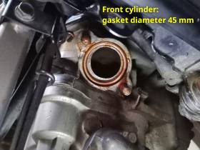 - The gasket for the front cylinder is 18291MM5860, outer diameter 45.0 mm